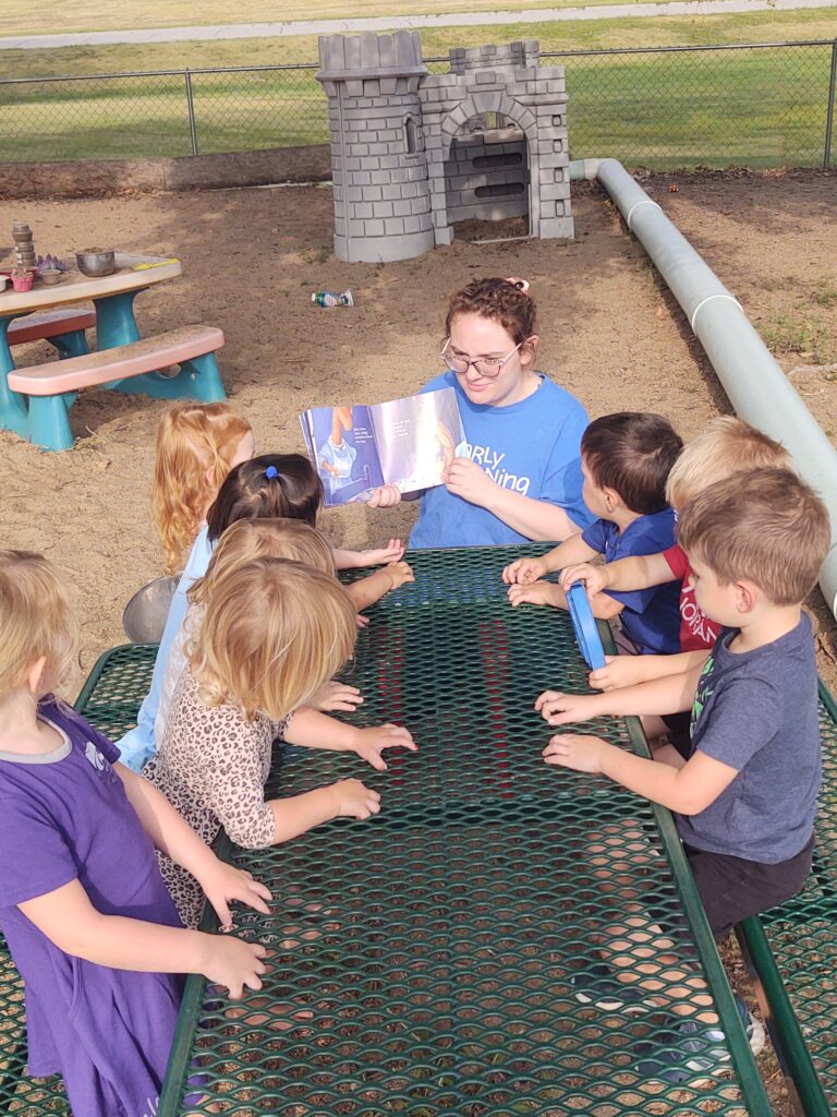 BELOIT – A three year old held a book up just like her teacher, pointed at the